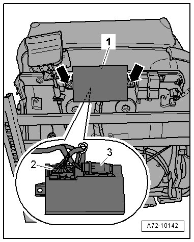 - To disconnect electrical connector, press catch - 1 -, rotate retaining bracket in - direction of arrow - and remove connector.