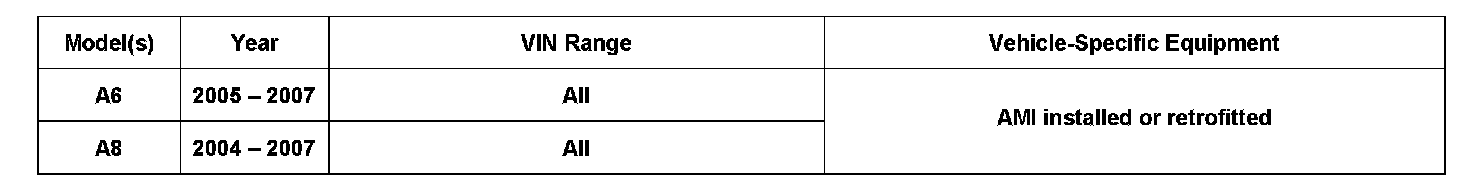 ^ The Audi Music Interface (AMI) is working according to manufacturer specification. The customer is not complaining about AMI malfunctions.