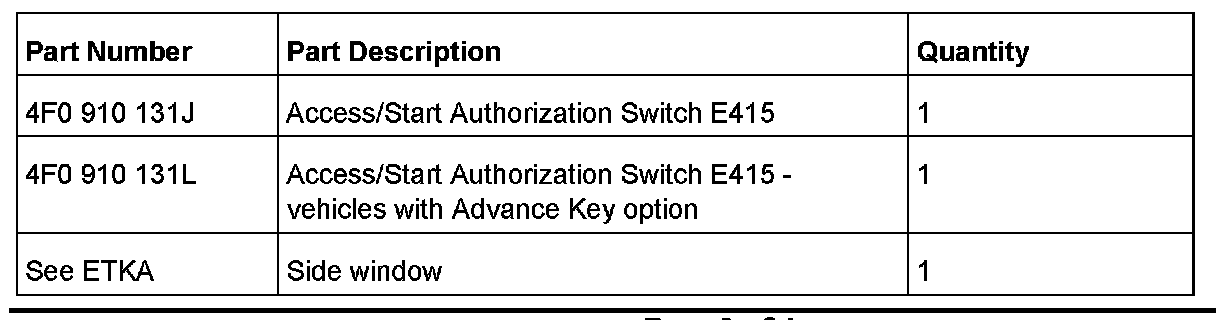 1. After verifying the condition, obtain an operative remote key from another A6 or Q7 (same remote key) to compare the reception strength with the customer's remote key.