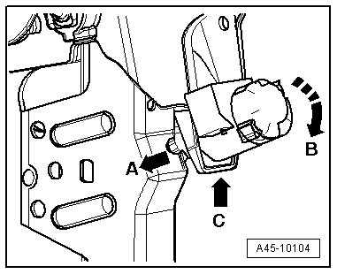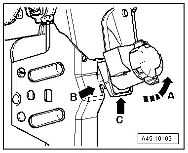 - Install the brake lamp sensor into the bracket - C - on the brake pedal and gently press it in - arrow A -.