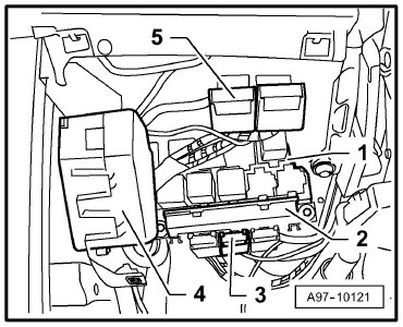 5 - Relay and fuse carrier on steering cross member