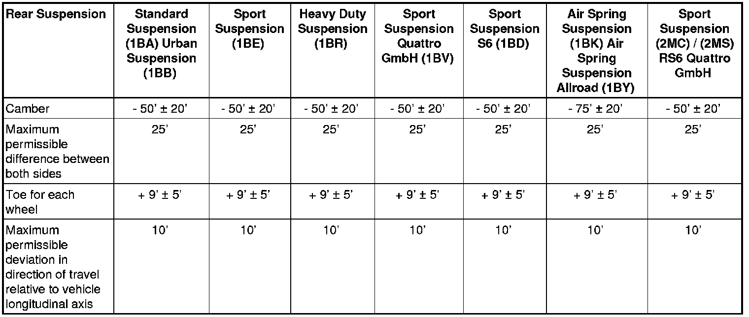 Wheel Alignment Specified Values