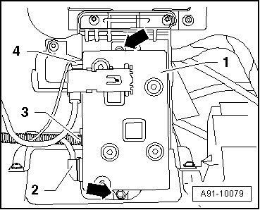 - Remove screws - arrows - (3 Nm) and remove front information display control head control module - 1 -.