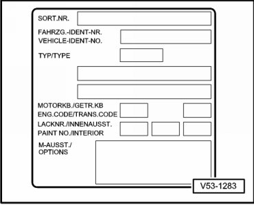 The vehicle data label is located at the rear in the spare wheel well.