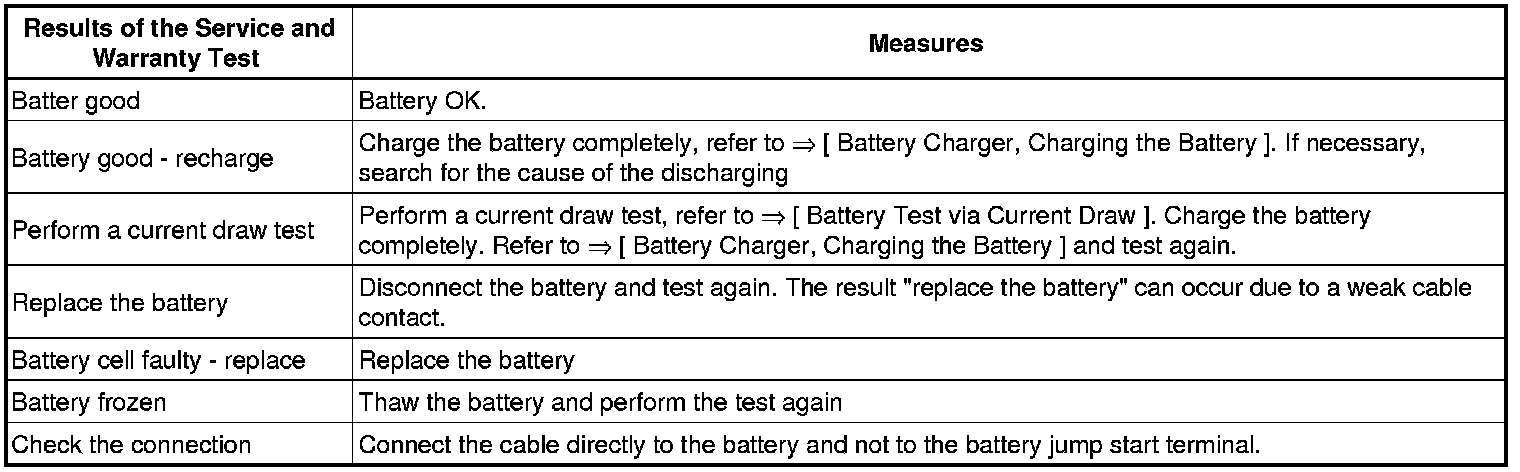 When performing the battery test with the battery tester (VAS 6161), the battery ground cable must not be disconnected.