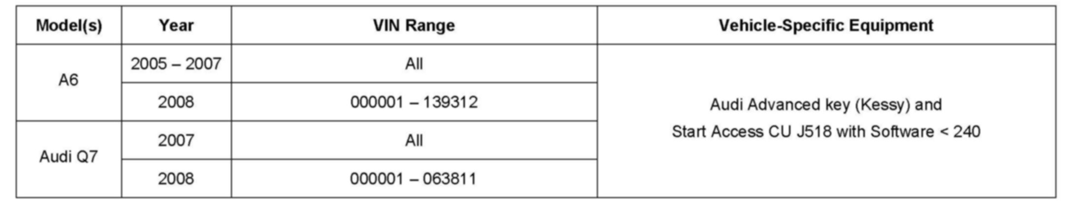 ^ Possibly affected vehicles must have the following equipment: