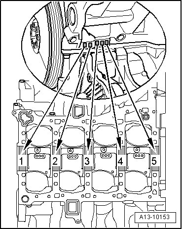 Tighten bolts for sealing surfaces of cylinder block/guide frame - dark hatching in the illustration 9 Nm in diagonal sequence.