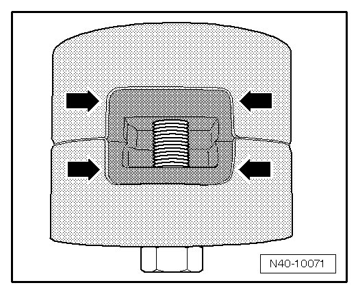 - Press out both bonded rubber bushings at the same time as depicted in the illustration.