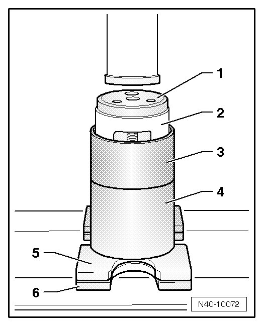 - Install the bonded rubber bushing - 1 - until it reaches dimension - a -.