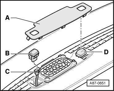 • Do not interchange sunlight photo sensor - B - (4 electrical connections) with light emitting diode for central locking system and interior monitoring system - D - (2 electrical connections).