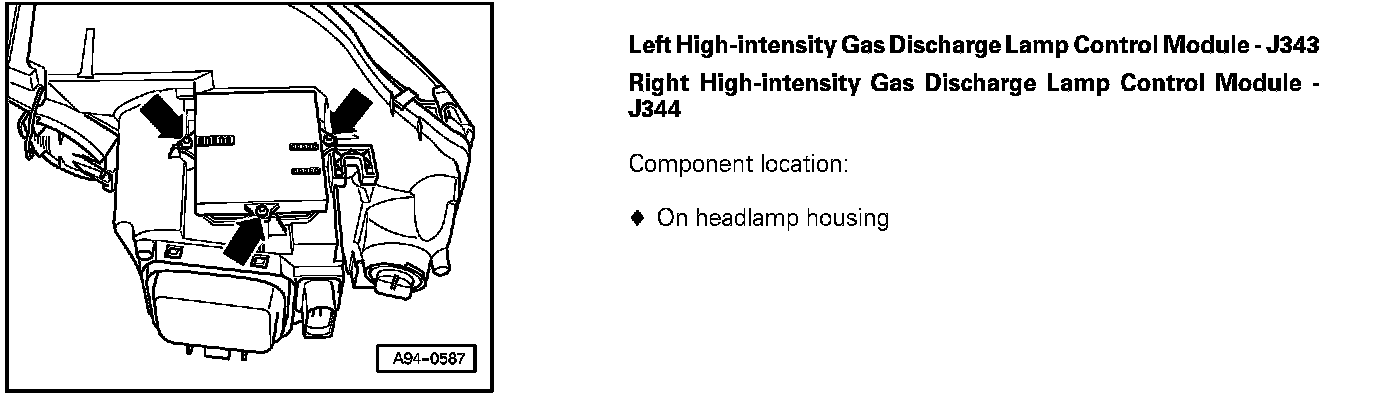 Left High-Intensity Gas Discharge Lamp Control Module - J343 / Right High-Intensity Gas Discharge Lamp Control Module - J344