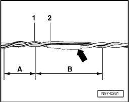 - During repair work, both bus wires must have the same length. When twisting the wires -1 and 2- together, the -A- = 20 mm routing length must be maintained.