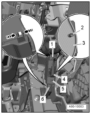 - Disconnect the connector - 4 - and remove the data bus on board diagnostic interface (J533) - item 5 -.