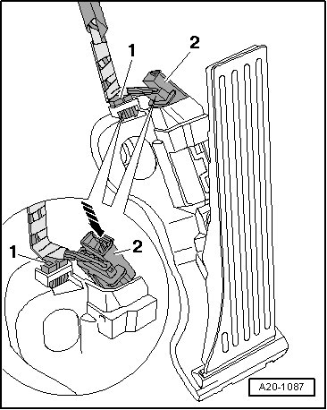 - Disconnect the Throttle Position (TP) Sensor (G79)/Accelerator Pedal Position Sensor 2 (G185) 6-pin electrical harness connector - 2 -.