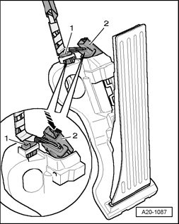 - Where necessary, pull wiring router - 1 - off from accelerator pedal module.