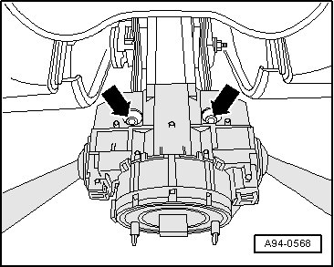 - Remove ignition switch - 3 - in - direction of arrow - from steering lock housing. The jeweller's screwdriver or wire hooks must remain inserted.