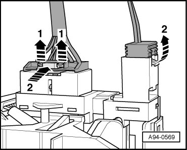 - Releases the connectors - arrows 2 - and disconnect them.
