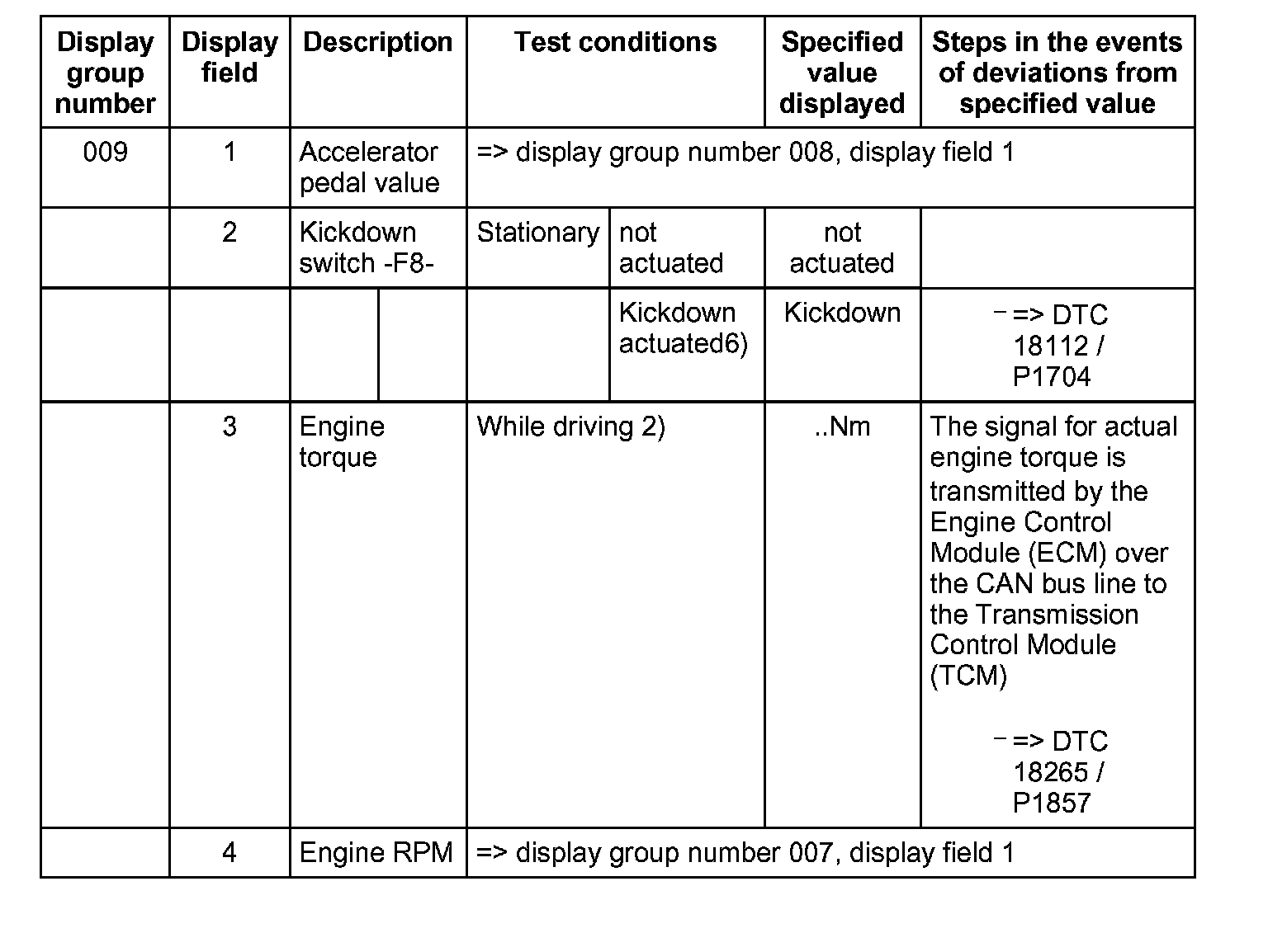 6) In order to generate the Kickdown signal the accelerator pedal must be depressed to the stop.