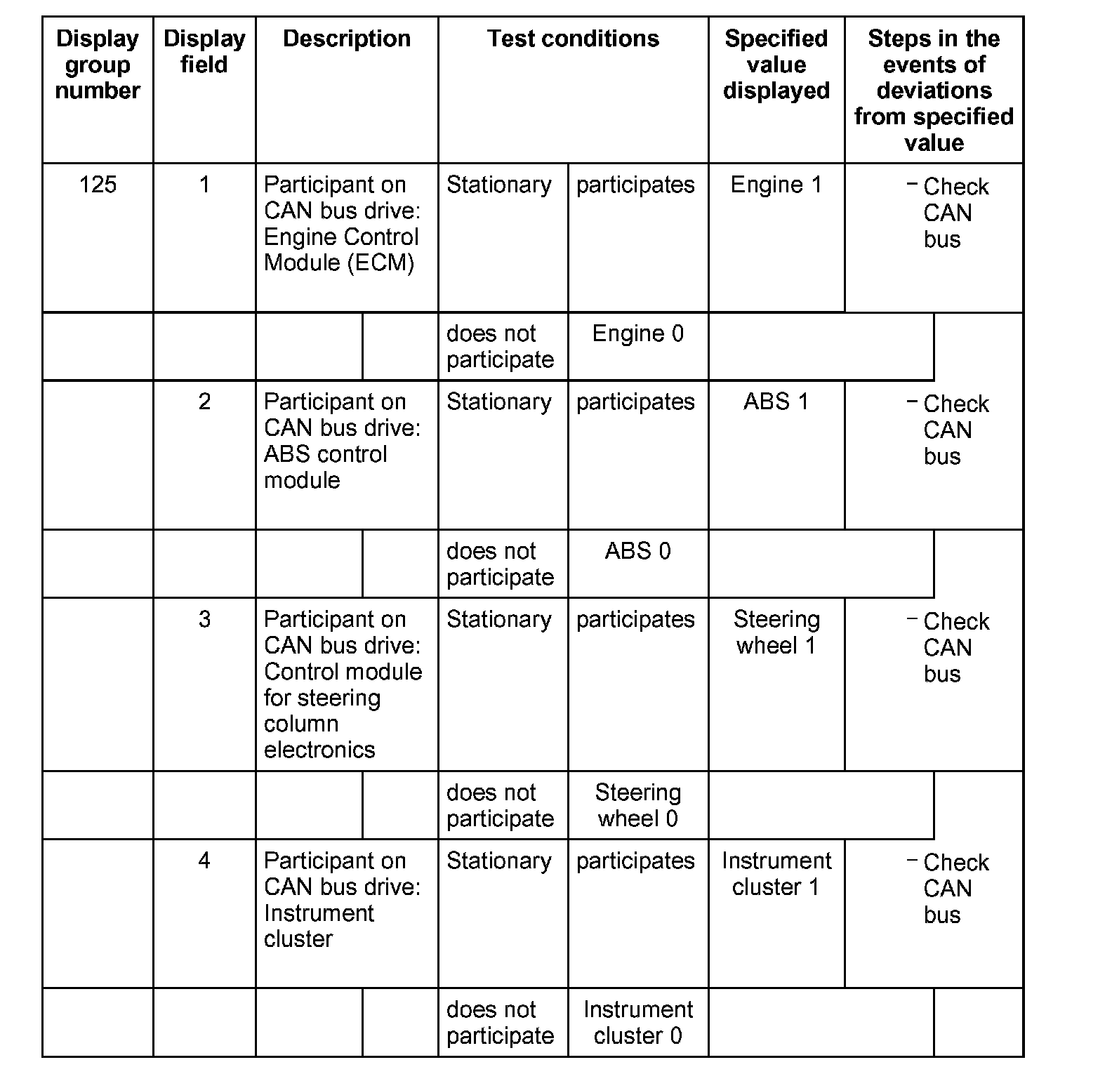 ^ If "0" is displayed and no trouble code has been set in the DTC memory, the corresponding control module does not have CAN capability (or is faulty).