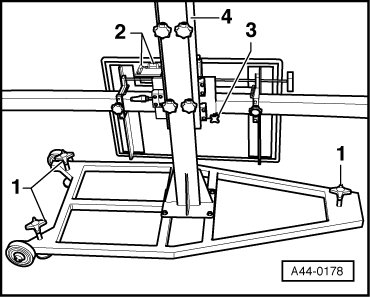 - Install the front wheel measuring sensors - 1 - on the (VAS 6190).