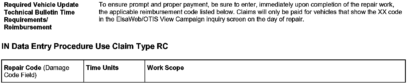 1. Procedure is valid only for vehicles that show the IN code in the OTIS View Campaign inquiry screen on the day of repair.