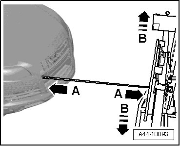 - Now align by sliding it sideways - arrows B - (VAS 6430) so that the laser beam is horizontally centered on the senor lens.
