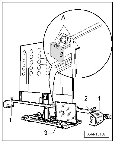 - Level the bubble levels - A and B - on the (VAS 6430) using the adjusting screws - 1, 2 and 3 -.