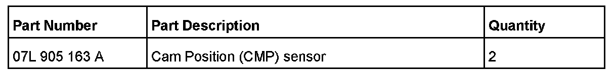 - One of the following DTCs for Bank 2 Cam Position (CMP) sensor 2 - G163 and/or CMP sensor 4 - G301: