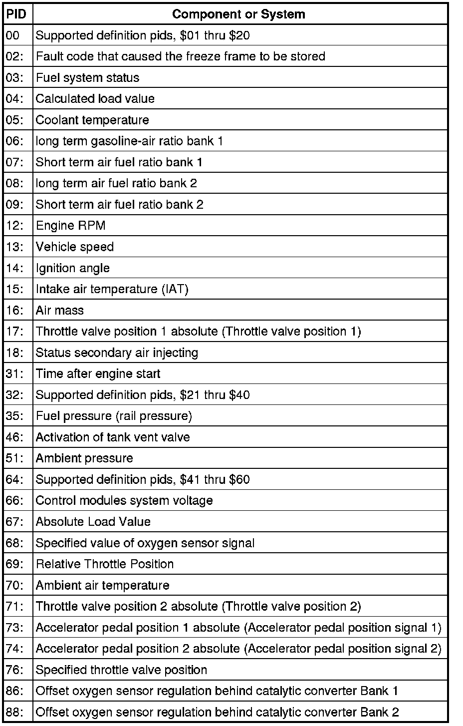 Depending on scan tool and protocol used, the information in diagnostic mode 02 may be referred to by different names such as Test-ID (TID), Hex-ID, Component-ID (CID), or On-Board Diagnostic Monitor Identifier (OBDMID).