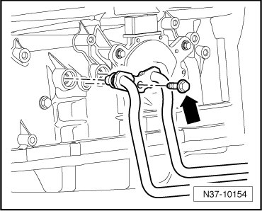 - Remove the bolt - arrow - and pull the ATF pipes out of the transmission.