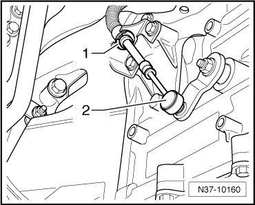 - Remove the ball head - 2 - on the selector lever cable from the selector lever shaft using (80 - 200).