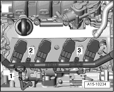 - Disconnect hose - 1 - to Secondary Air Injection (AIR) pump.