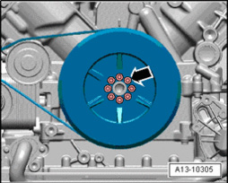 Tighten vibration damper bolts - arrow - diagonally in 3 stages.