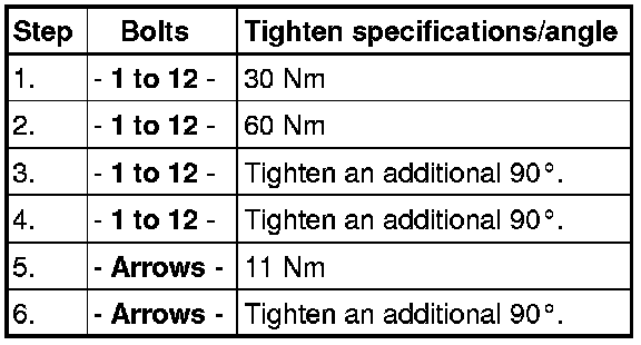- Pre-tighten the nuts in the sequence - 1 to 6 - to 30 Nm.