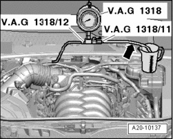 - Connect a Fuel pressure test set (high pressure) to the fuel line.
