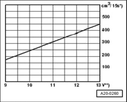 - Compare the quantity of fuel delivered with the minimum delivery rate in the diagram (cu.cm /15s).