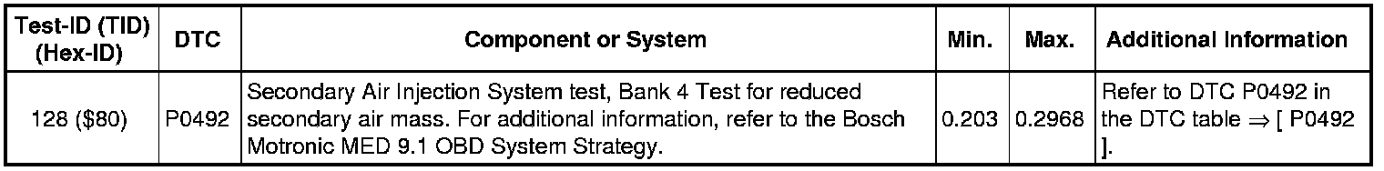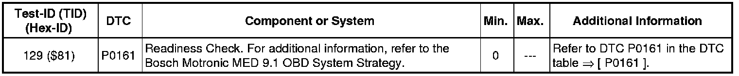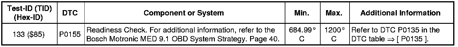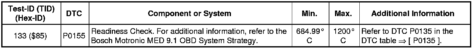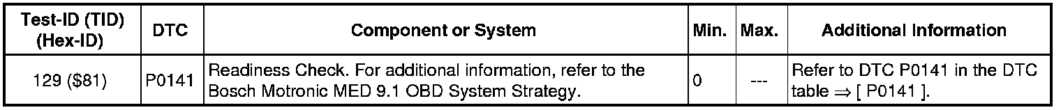 - If any component or system fails to meet the specified values, refer to Diagnostic "Mode 03: Interrogating Fault Memory" to check for stored DTC's or the corresponding diagnostic repair procedure.