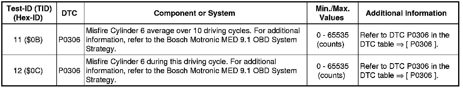 Test-ID 167 ($A7): Mis-Fire Cylinder 6 Data
