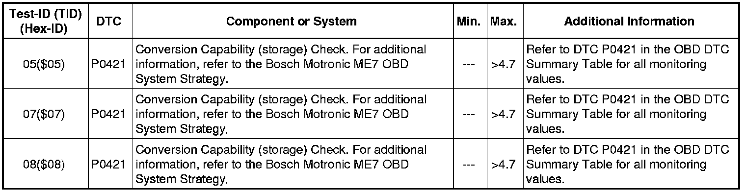 - If any component or system fails to meet the specified values, refer to Diagnostic "Mode 03: Interrogating Fault Memory" to check for stored DTC's or the corresponding diagnostic repair procedure.