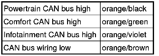 • CAN bus wires have the following color coding: