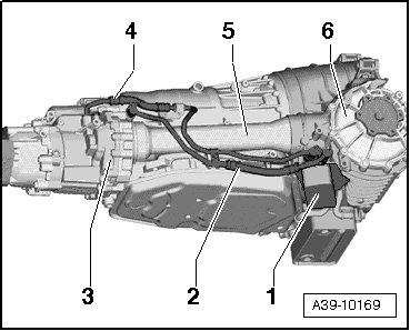 • An additional heat exchanger for transmission oil cooling - 1 -for transfer case - 3 - and front final drive - 6 - is attached to the transmission.