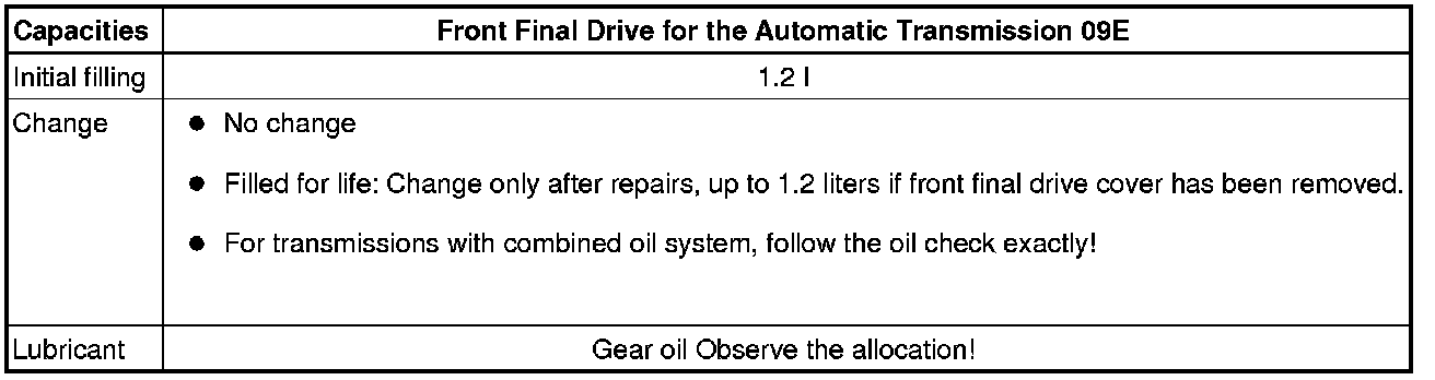 • Various types of gear oil are available for this transmission. These are allocated to the transmission codes.