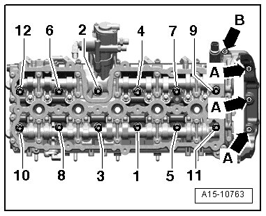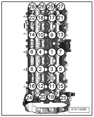 • After installing the camshafts, the engine may not be started for approximately 30 minutes. The hydraulic adjusting elements must seat themselves (otherwise the valves will seat themselves on the pistons).