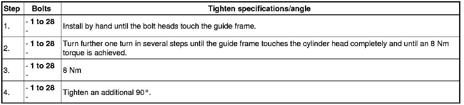 Tighten the bolts in 4 steps according to the tightening sequence:
