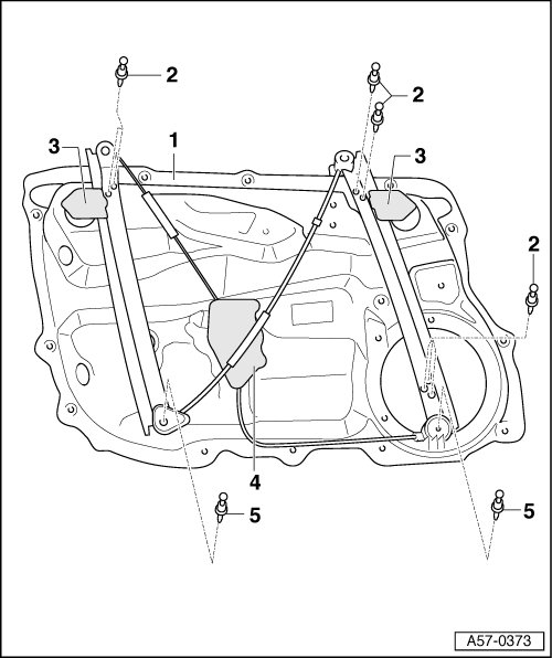 • Rivet window regulator motor using special pop rivet pliers (V.A.G 1753 A).