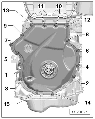 Timing Chain Guard Lower Section - Tightening Sequence for 15 Bolts