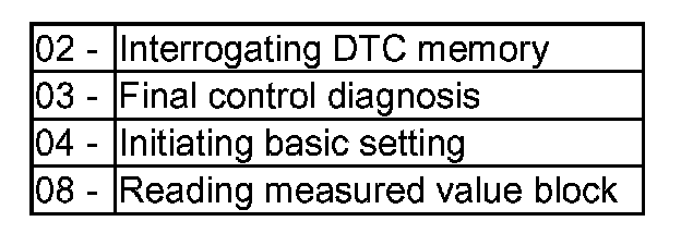 Indicated on display: (Function selection, e.g. 02 - interrogate DTC memory)