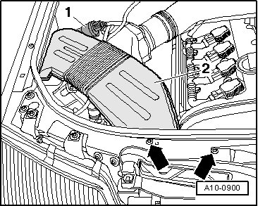 - Disconnect electrical connector - 1 - from mass air flow (MAF) sensor (G70).
