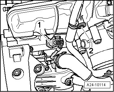 - Disconnect the Fuel Pressure Sensor (G247) electrical harness connector - 1 -.