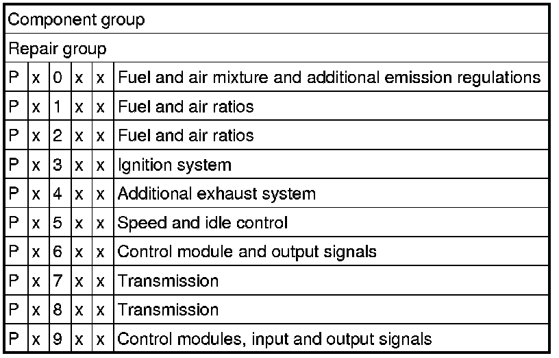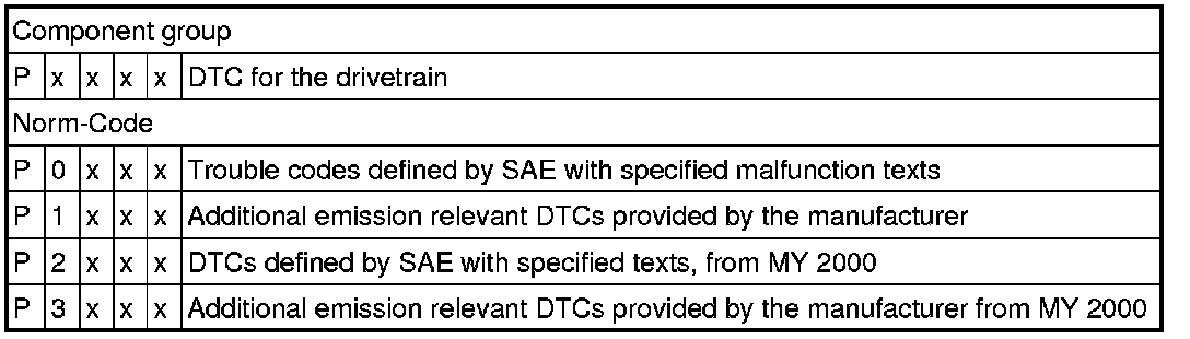 The DTC's are sorted by SAE code with the DTC tables consisting of a 5-digit alpha-numeric value.